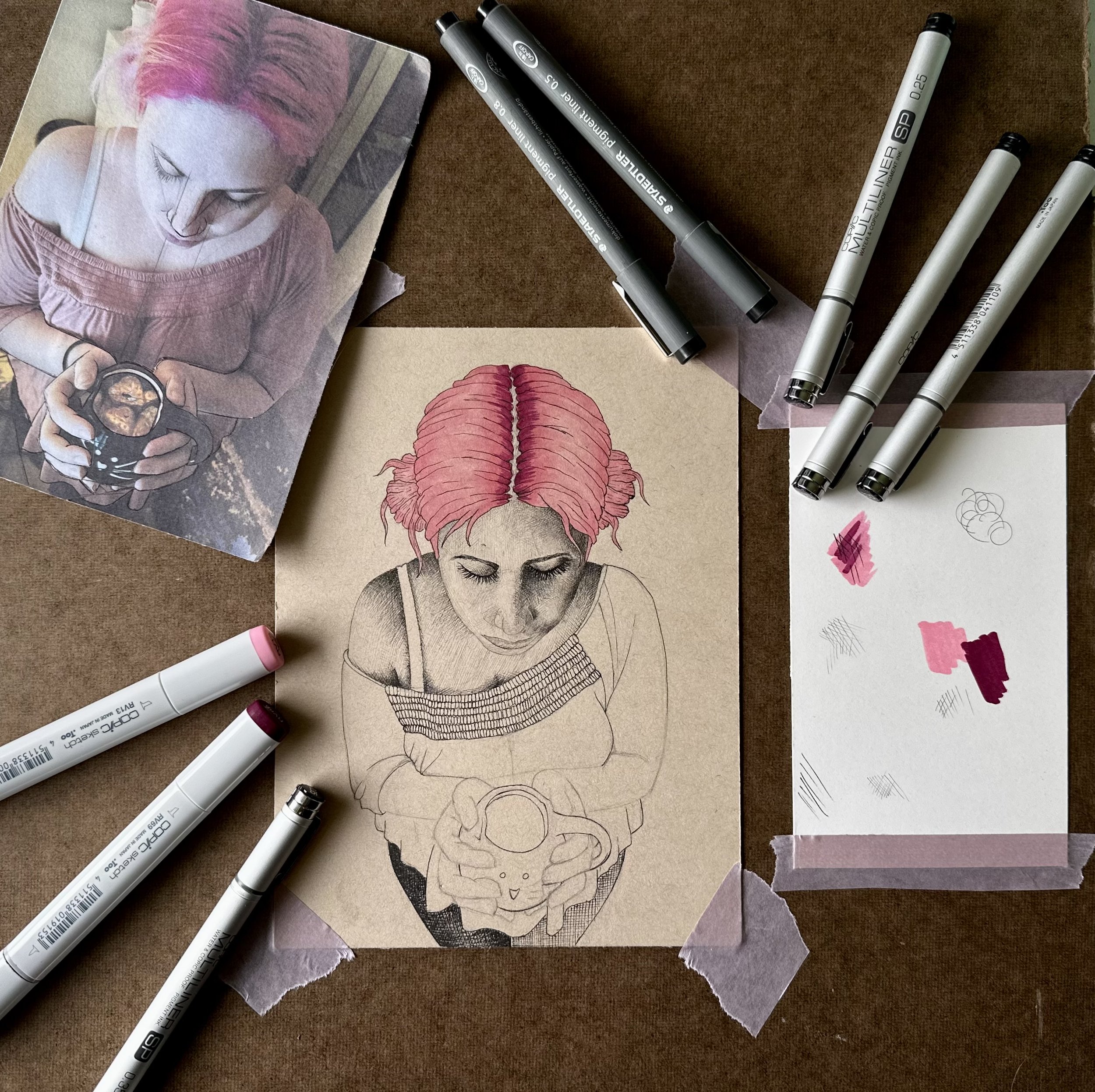 As a kid I loved drawing, I got more serious about it in high school and took interest in portraits. Something about being able to capture a fleeting facial expression just fascinated me. I started with graphite and colored pencils but during college transitioned into ballpoint pens and fine-liners.
